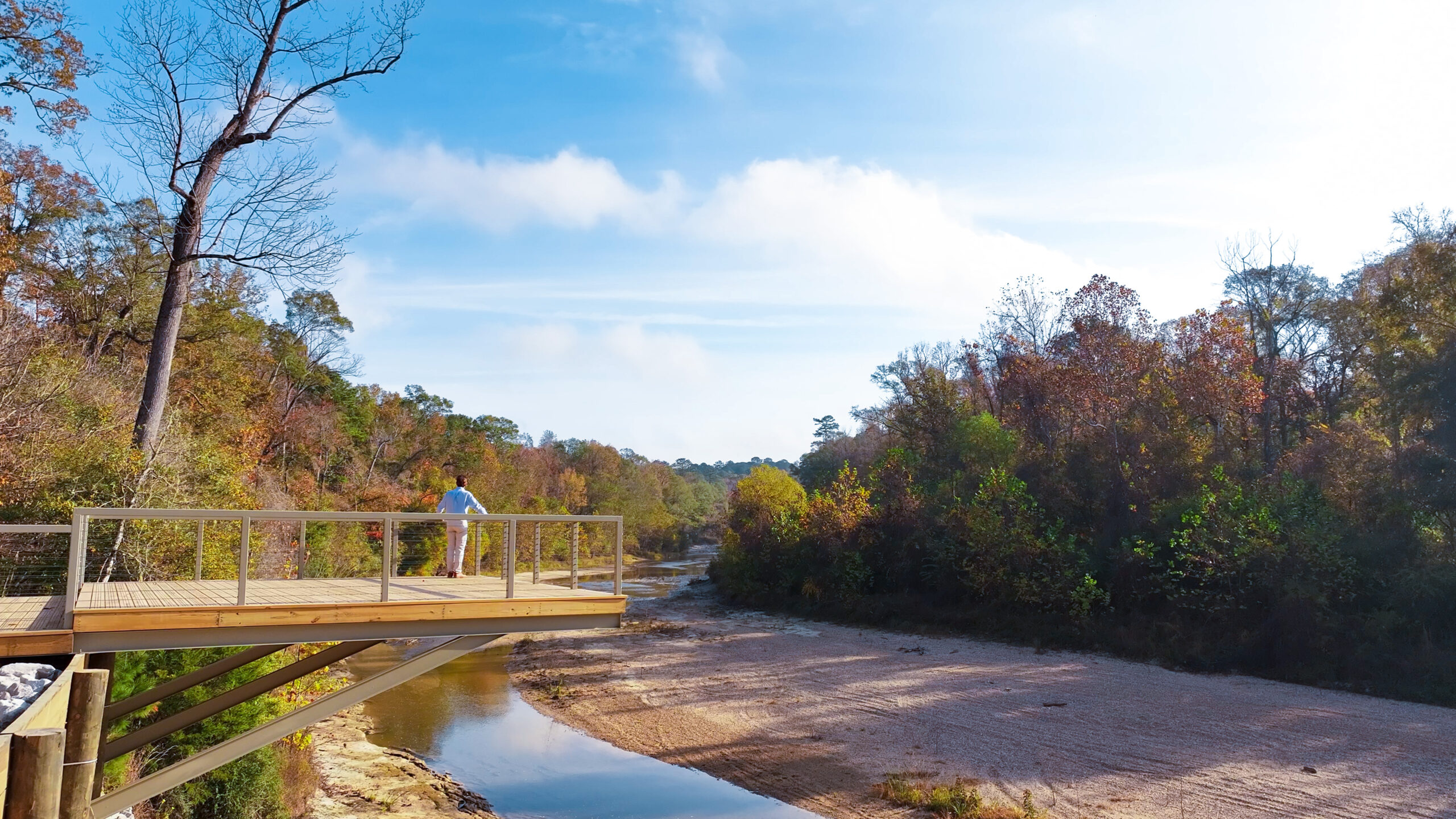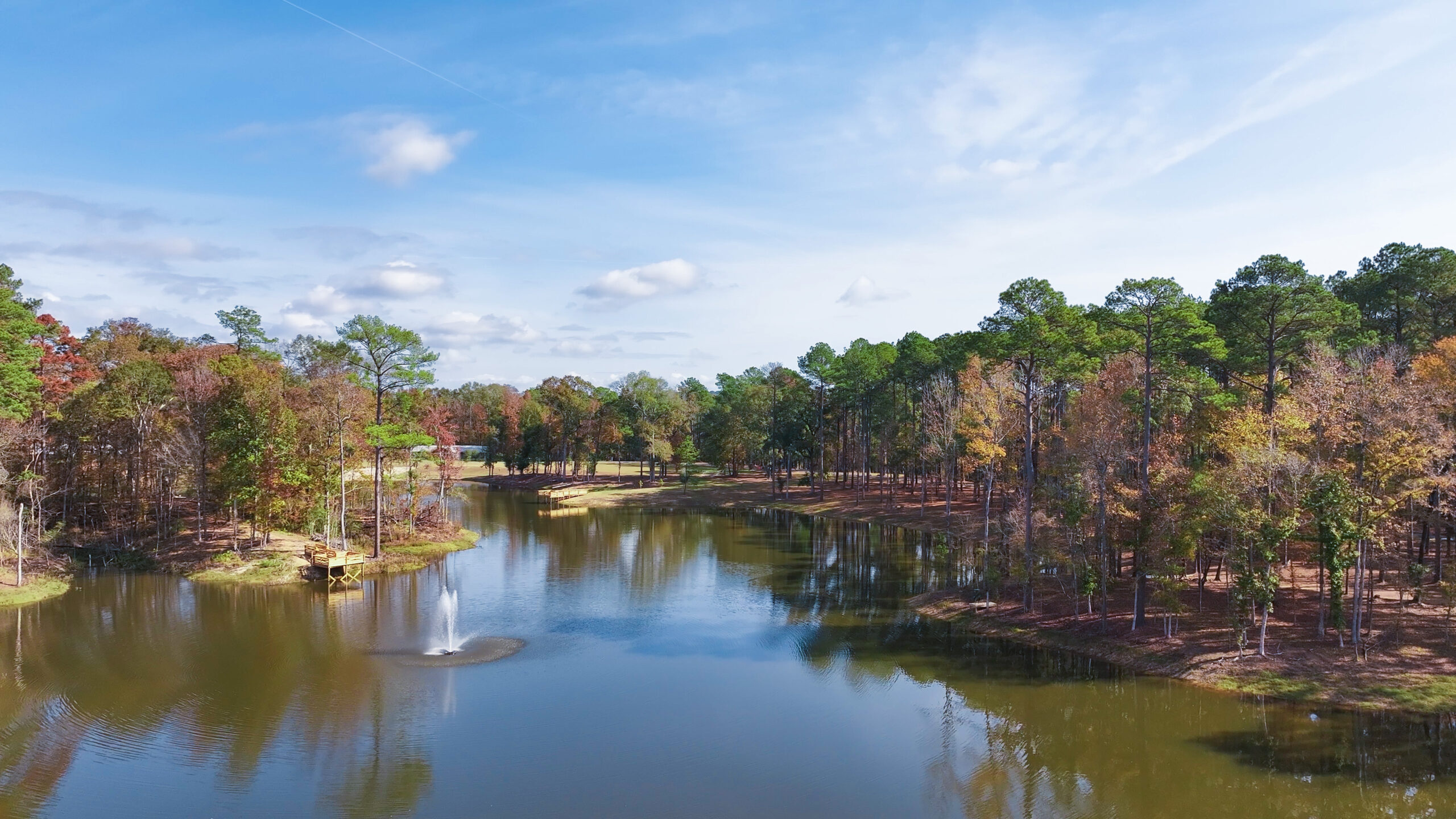 With a quiet wooded shoreline and covered bridge connecting its twin waters, this lake is designed not only for aesthetics, but for encounters with God.