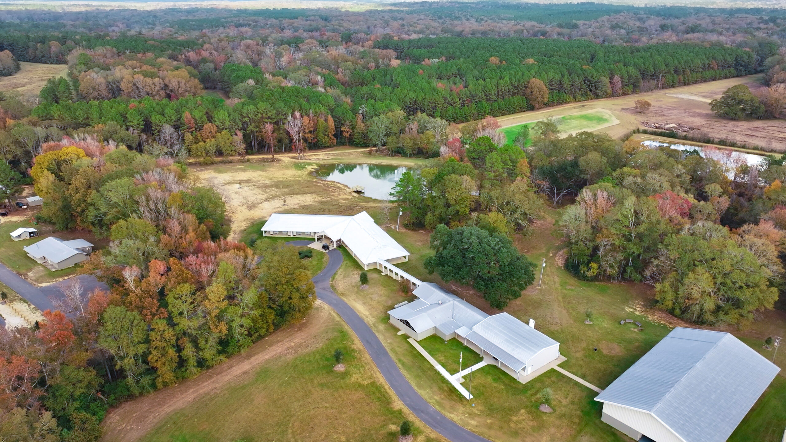 Spread across the property are cabins, a chapel, a guest lodge, a director’s home, cafeteria, staff housing, recreational building, a pool, 3 recreational fields, a livestock facility, 4 lakes with 5 piers, an observation deck high above Thompson Creek, multiple wildlife viewing stands, and numerous gathering spaces for teaching, fellowship, and spiritual formation.